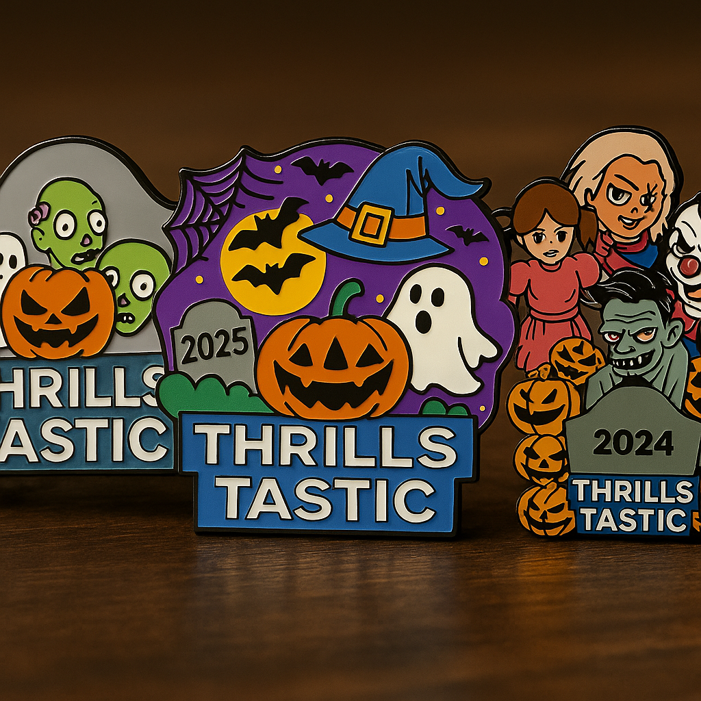 Verzamel de Halloween-set met drie unieke ThrillsTastic Halloween pins! Deze limited edition bundel bevat de Halloween pins van 2023, 2024 en 2025, elk met zijn eigen iconische Halloween-design.